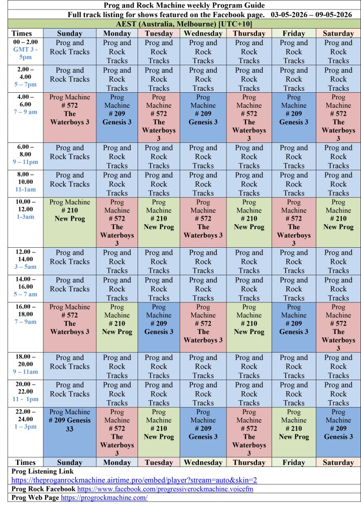 Home page for all info; https://www.facebook.com/progressiverockmachine.voicefm/